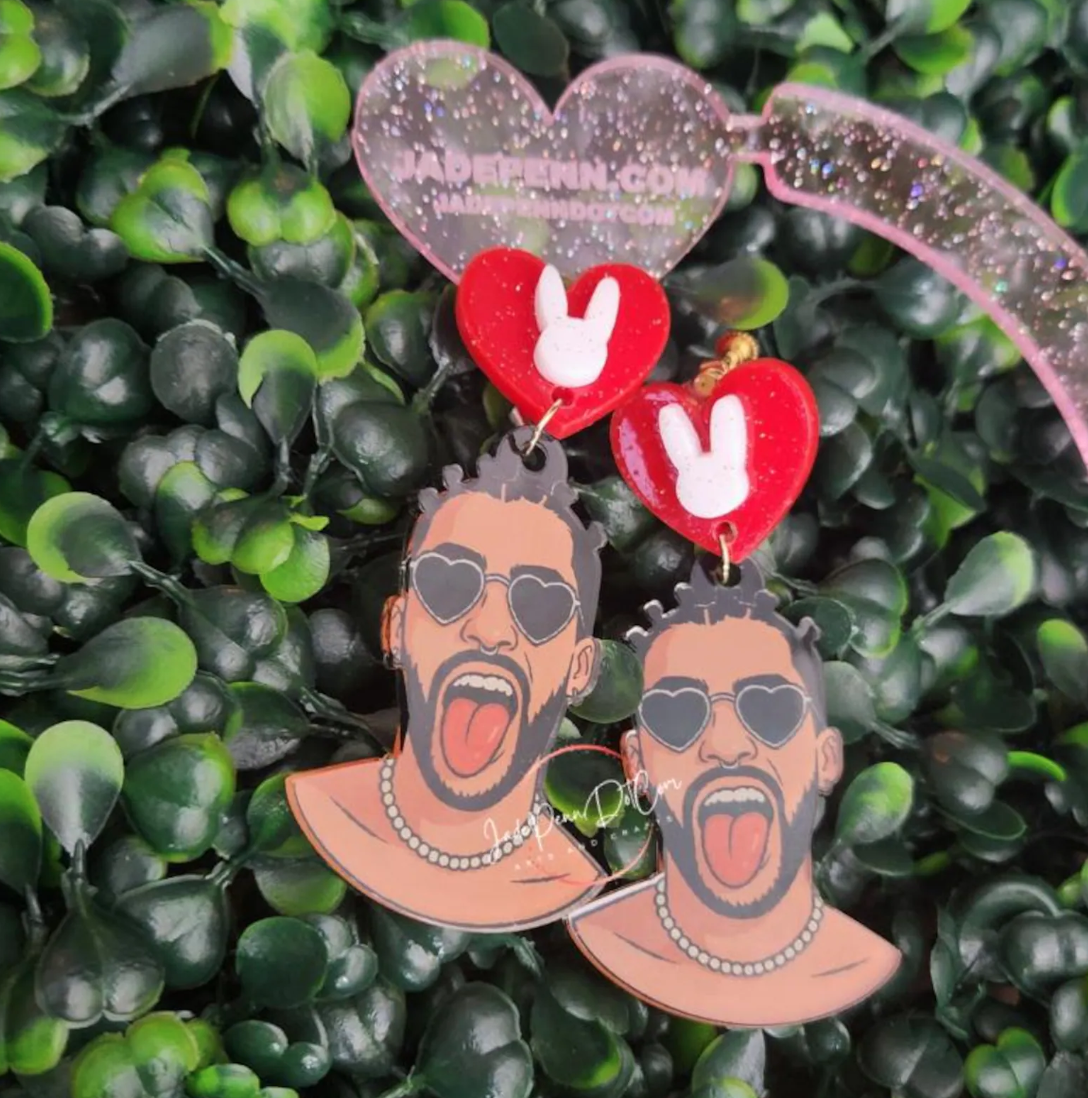 Turn your outfit into a show-stopping moment with these statement acrylic earrings featuring a bold performer in heart-shaped sunglasses, tongue out, and full “never go out of style” energy. Whether you’re tuning in for the game or the performance, these earrings keep the spotlight on you.