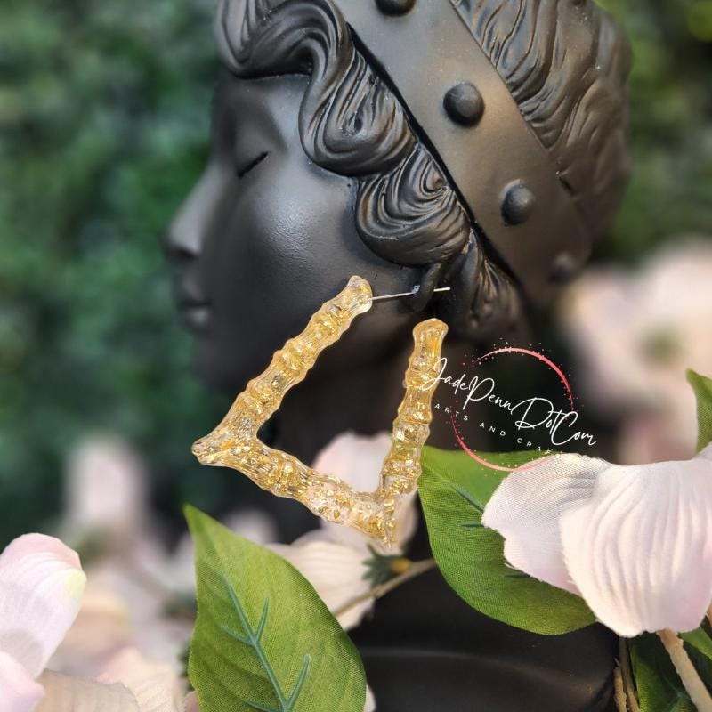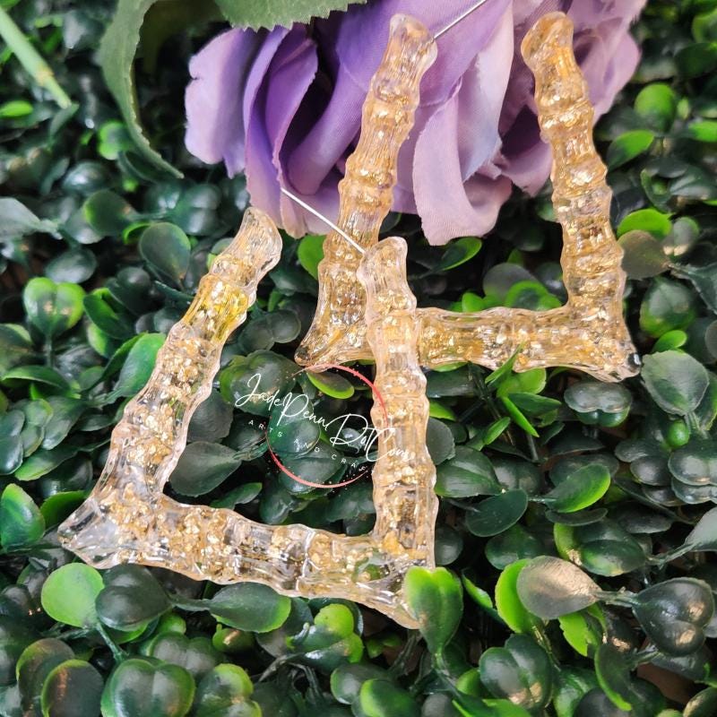 Bamboo Earrings Gold Accent & Flake Retro Style Acrylic Earrings