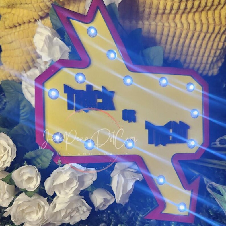 Get ready for Halloween with this “Trick or Treat” Light-Up Sign SVG! Perfect for adding a touch of spooky charm to your home, this laser cut ready file is designed to make crafting easy and fun. The SVG file features bold “Trick or Treat” text and is compatible with Cricut, ensuring a seamless crafting experience.