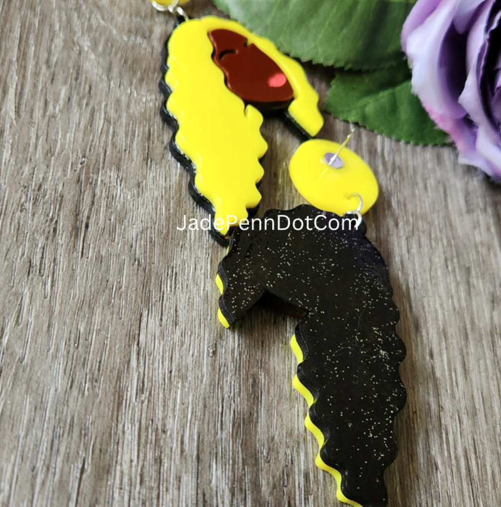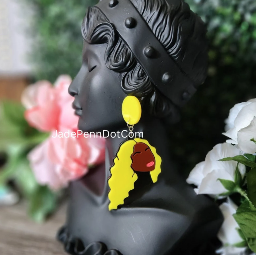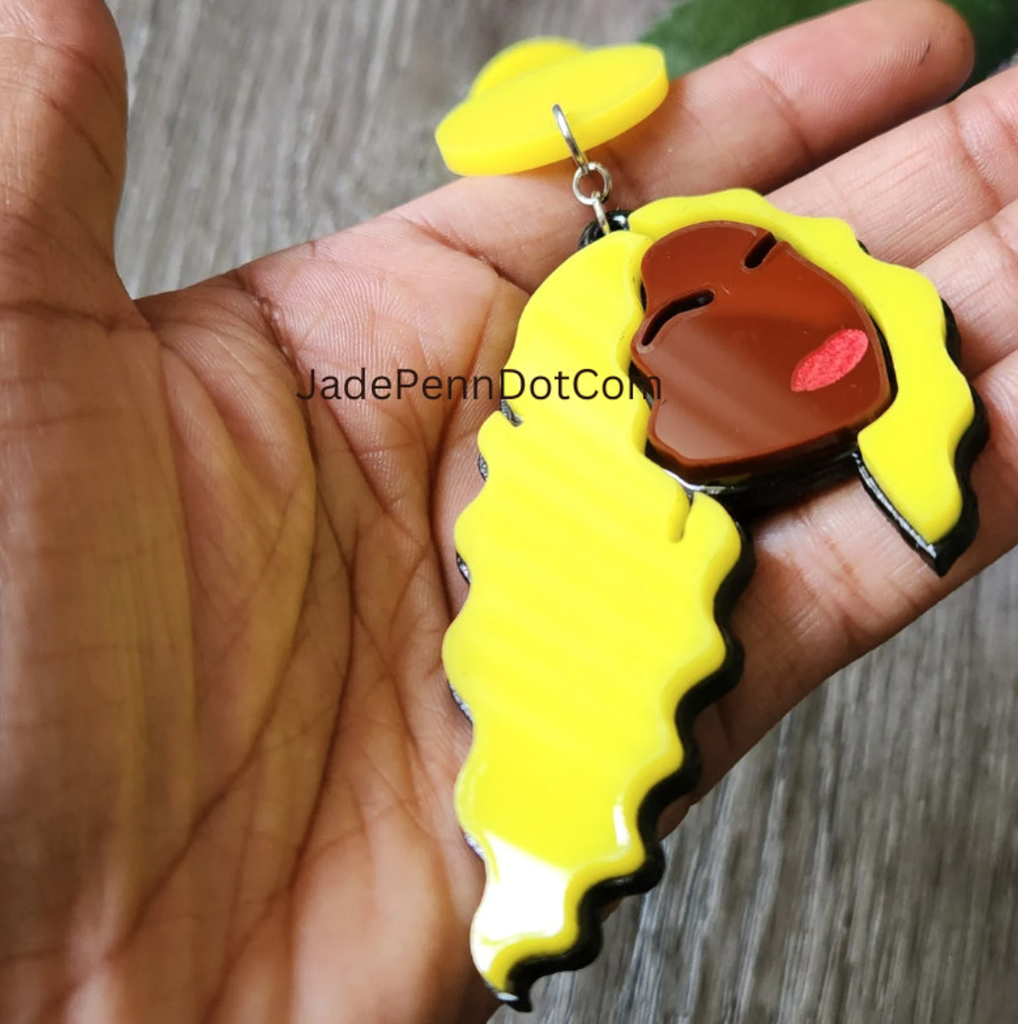 These earrings are the perfect accessory for any outfit, whether you’re dressing up for a night out or just adding a little something extra to your everyday look. They’re laser cut from brown acrylic and yellow acrylic, with a black wood backing. They’re lightweight and sturdy, with a resin coating that makes them extra shiny. And they’re inspired by Beyonce’s iconic style. So why not add a little sass to your life with these earrings?