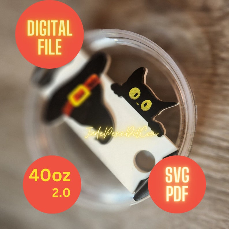 Cat Witch Hat Download Tumbler Name Tag SVG PDF 40 oz 2.0 Version