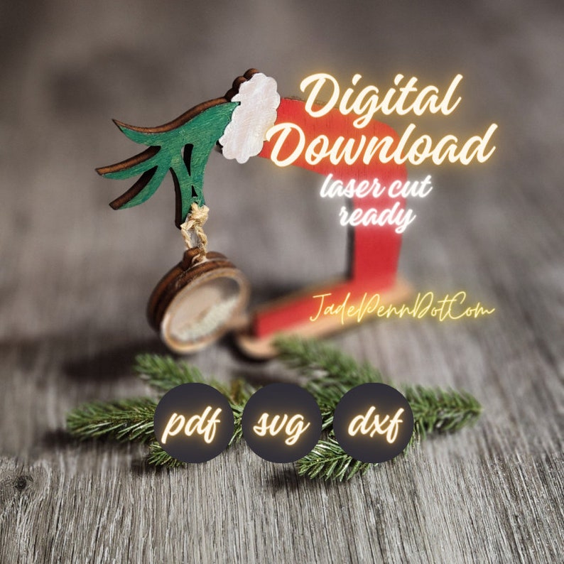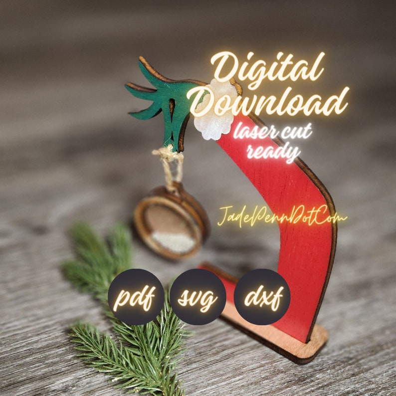 Looking for a fun and festive way to add some personality to your holiday decor? Check out my digital files for a laser cut ready elf hand stand designed for hanging ornaments. This design comes with a sturdy stand, 1 shaker design, plus 7 additional ornament designs. You can easily add names to various ornaments to personalize your display. This design is ideal for 1/8″ thick materials. So why wait? Add some personality to your Christmas decor today!