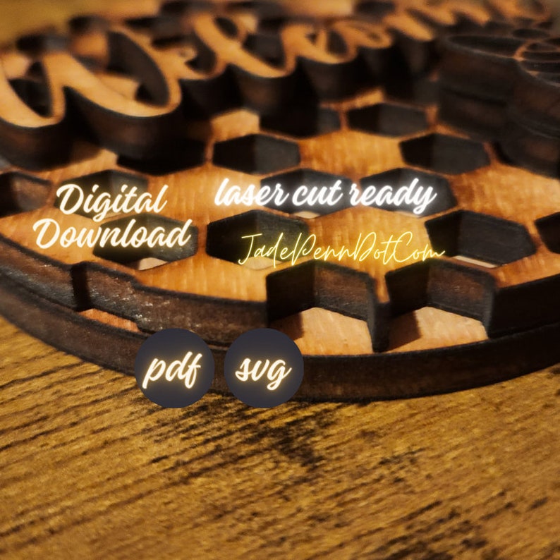 This digital file is perfect for anyone who wants to create their own laser-cut home decor. This design offers a variety of design options, including a door hanger, that can be customized with a name or with the “Welcome” text included in the download. These files are fun, easy to use, and perfect for people of all skill levels.