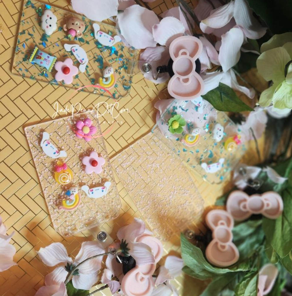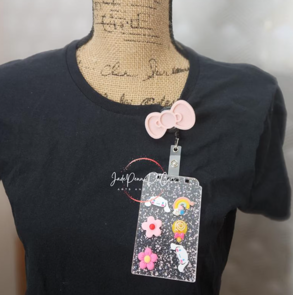 Level up your badge game with these gijinka-inspired badge reels paired with dazzling glitter ID covers! Featuring layered kawaii bows and adorable 3D elements like rainbows, clouds, pastries, flowers, and Cinnamoroll-style characters, these badge sets bring joy and personality to your workday look.