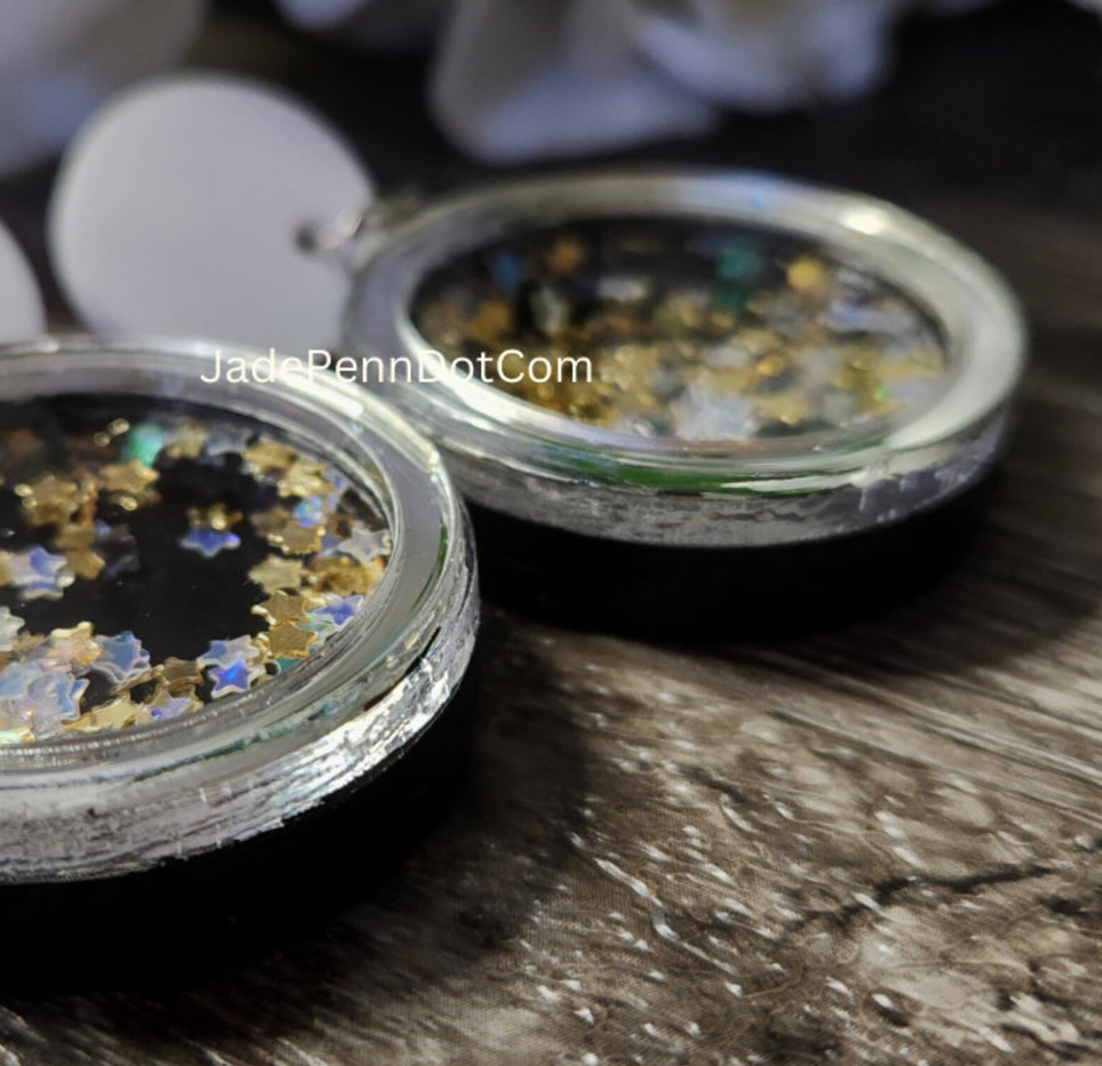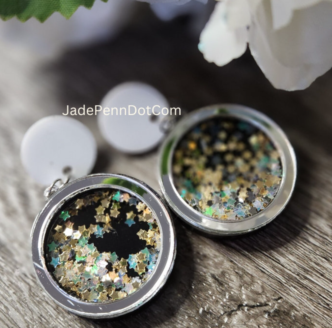 Shaker Party Celebration Earrings Dangle Layered Acrylic Jewelry Stud Backing Gold Silver and Clear Stars New Year Jewelry Holiday